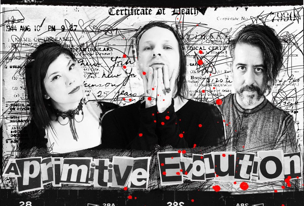 A Primitive Evolution are Brett Carruthers on Vocals, Guitars and Synths, Steph Misayo Seki on Bass and Synths and Stu Dead on Drums, Percussion and Dirty Beats.