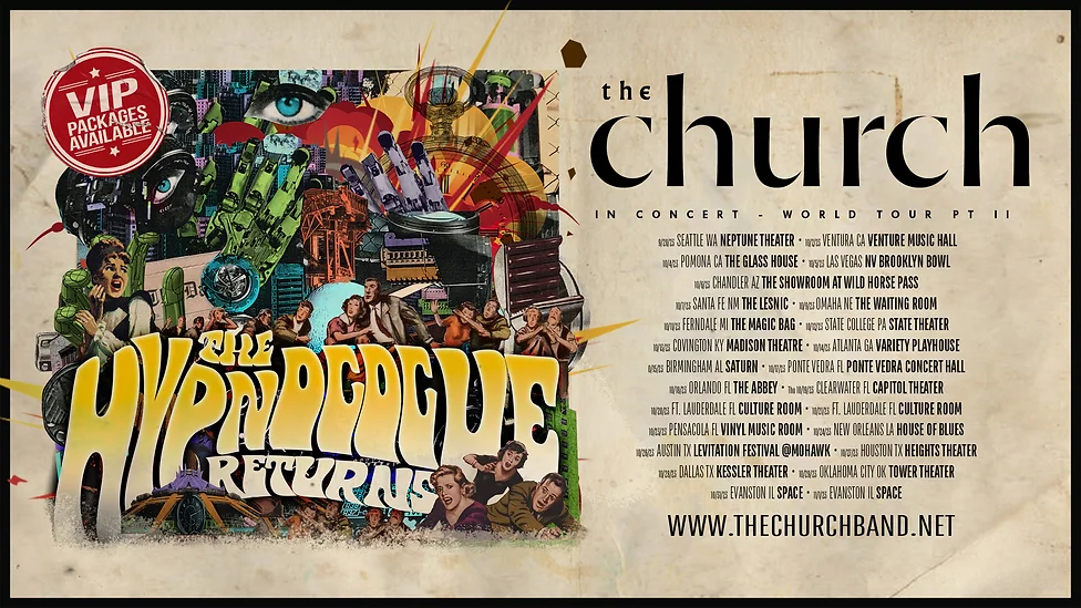 Few bands enter their fifth decade of making music with all the fierce creative energy of their early years. Even fewer bands are like The Church. With a Fall Tour kicking off on September 28th in Seattle, WA and circling the States and hitting SoCal, New Mexico, Georgia, Florida, and Illinois in support if their critically-hailed 26th album The Hypnogogue, these psych-guitar masters will be releasing a Deluxe Edition for this album on September 22, 2023 via Communicating Vessels. In anticipation for both the expanded version and the tour, The Church are releasing the next single “Realm of Minor Angels,” which can be heard here. As one of the additional tracks added to the Deluxe Edition, the song falls expertly within the band’s forward-facing oeuvre.